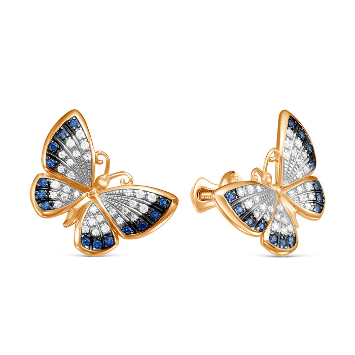 Совместные покупки Пермь Ювелирные украшения и бижутерия Серьги — Серьги-пусеты Бабочки из золочёного серебра с фианитами 925 пробы п6-440-2з208