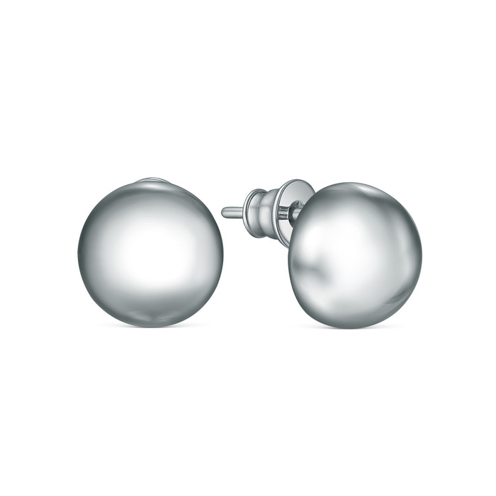 Серьги-пусеты из родированного серебра - Полусферы 220-10-279р