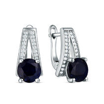 Серьги из серебра с сапфир и кубическим цирконием родированные 925 пробы GTE-977