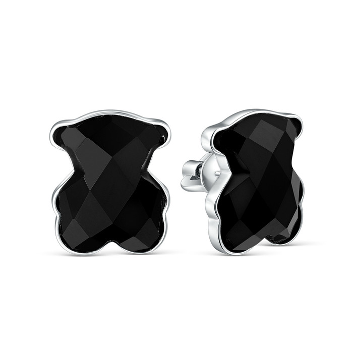 Совместные покупки Пермь Ювелирные украшения и бижутерия Серьги — Серьги-пусеты из серебра с агатом родированные - Мишки 925 пробы Ts-15-02Ar