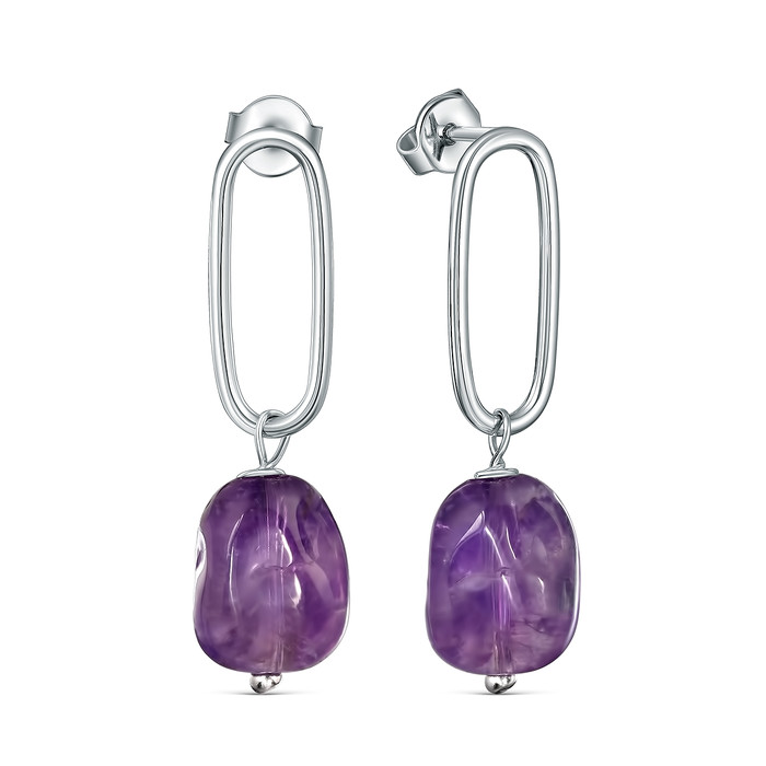 Совместные покупки Пермь Ювелирные украшения и бижутерия Серьги — Серьги-пусеты из серебра с аметистом родированные 925 пробы 18991AMRH