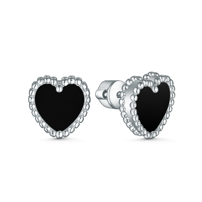 Совместные покупки Пермь Ювелирные украшения и бижутерия Серьги — Серьги-пусеты из серебра с чёрным ониксом родированные - Сердца 2-032р442