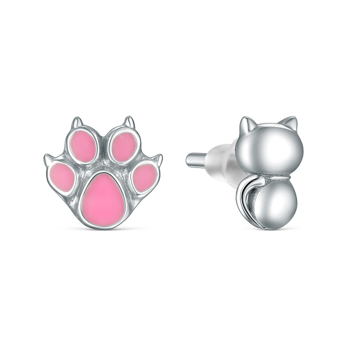 Серьги-пусеты из серебра с эмалью родированные - Лапка и Кошка 2110130