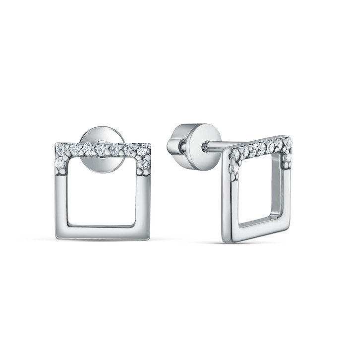 Серьги-пусеты из серебра с фианитами родированные - Квадраты 925 пробы 12-1377р