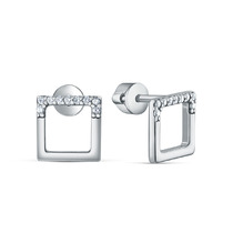 Совместные покупки Пермь Ювелирные украшения и бижутерия Серьги — Серьги-пусеты из серебра с фианитами родированные - Квадраты 925 пробы 12-1377р