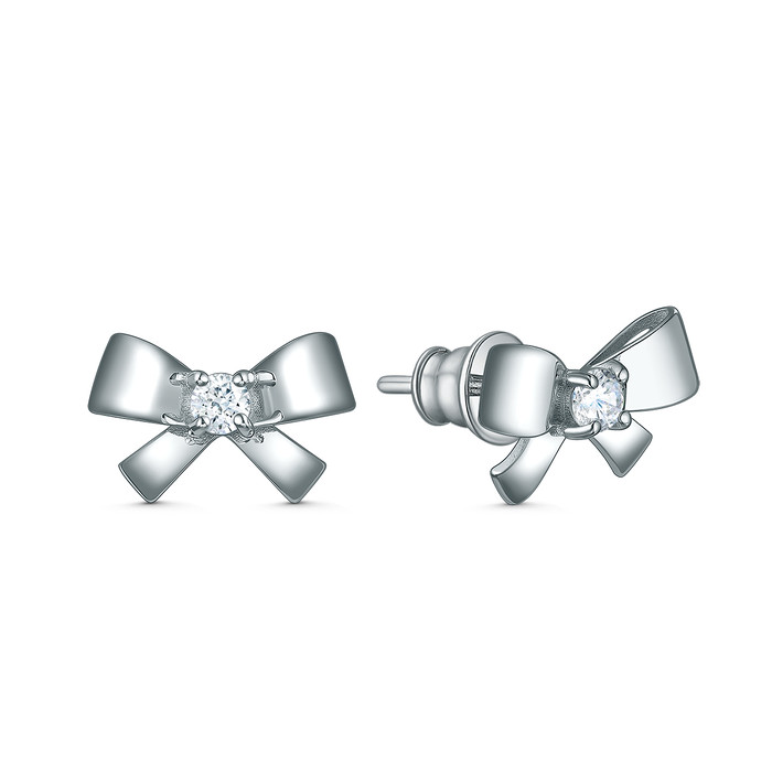 Совместные покупки Пермь Ювелирные украшения и бижутерия Серьги — Серьги-пусеты из серебра с фианитом родированные - Банты 221-10-256-1р