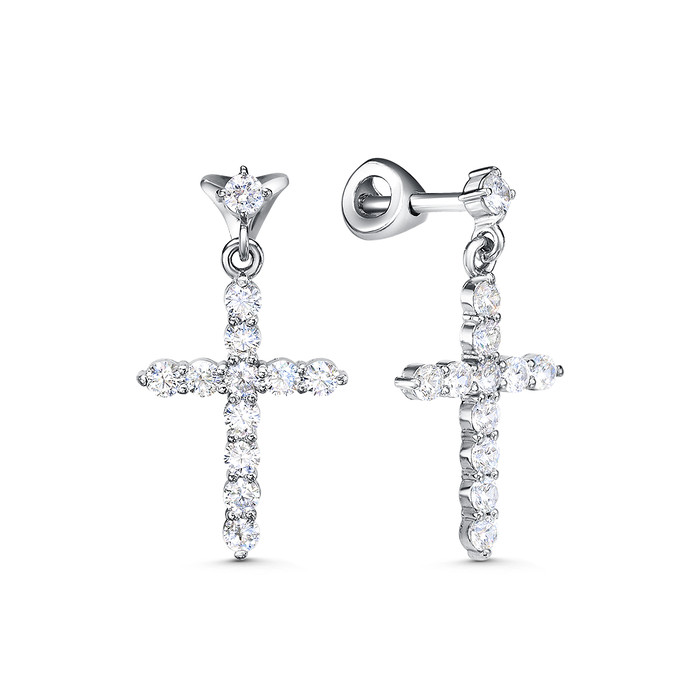 Серьги-пусеты из серебра с крестами и фианитами родированные 925 пробы 21680р