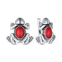 Серьги из серебра с кораллом родированное - лягушки 925 пробы С-4071ок454