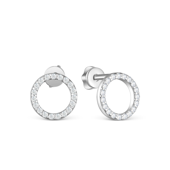 Совместные покупки Пермь Ювелирные украшения и бижутерия Серьги — Серьги-пусеты Круги из серебра с фианитами родированные 925 пробы 12-1074