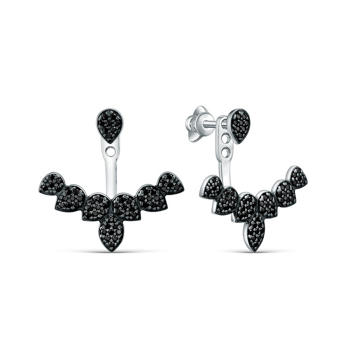 Серьги-пусеты трансформеры из серебра с натуральной шпинелью родированные (2 в 1