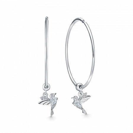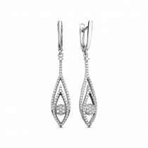 Серьги с фианитом родированные серебро 925*