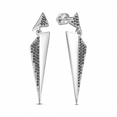 Серьги с фианитом родированные серебро 925*