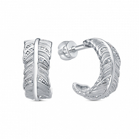 Серьги с фианитом родированные серебро 925*