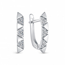 Серьги-пусеты из серебра с фианитами родированные 925 пробы С-3195-Р