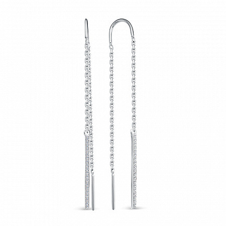 Серьги с фианитом родированные серебро 925*