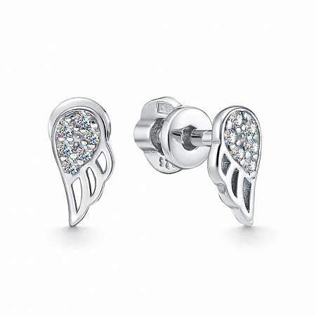 Серьги с фианитом родированные серебро 925*