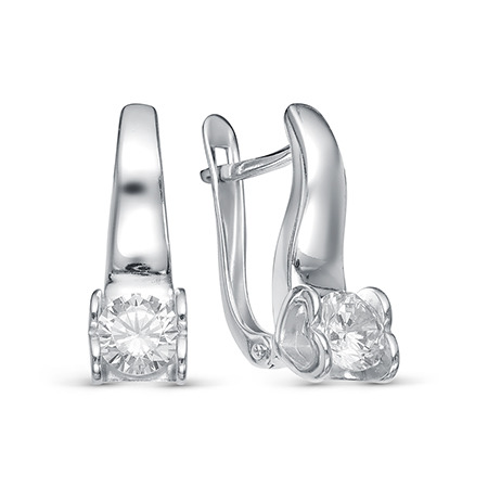Серьги с фианитом родированные серебро 925*