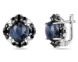 Серьги из чернёного серебра с ониксом и марказитами 925 пробы HE1750-ON-LK