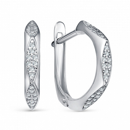Серьги с фианитом родированные серебро 925*