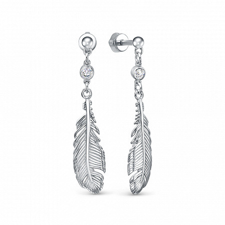 Серьги с фианитом родированные серебро 925*