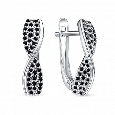 Серьги с фианитом родированные серебро 925*