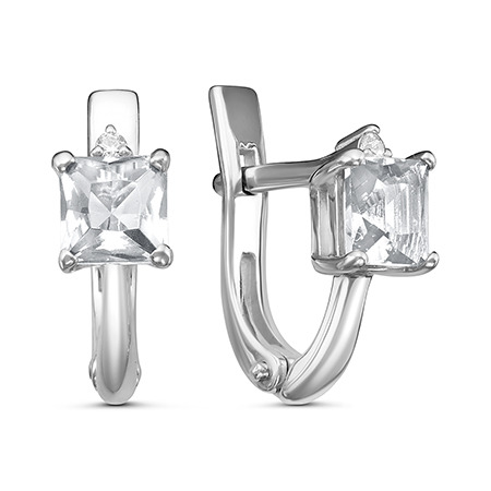 Серьги с фианитом родированные серебро 925*