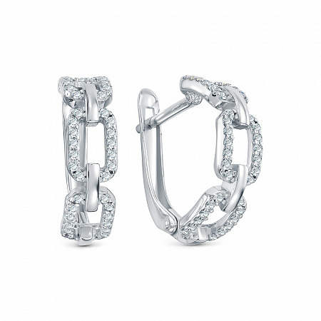 Серьги с фианитом родированные серебро 925*