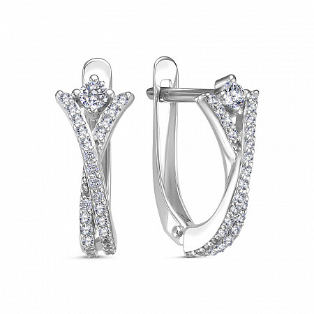 Серьги с фианитом родированные серебро 925*