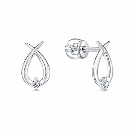 Серьги с фианитом родированные серебро 925*