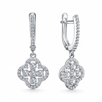 Серьги с фианитом родированные серебро 925*