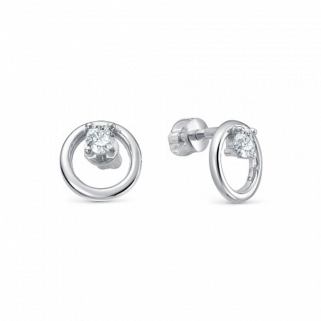 Серьги с фианитом родированные серебро 925*