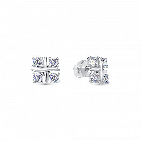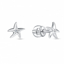 Серьги с фианитом родированные серебро 925*