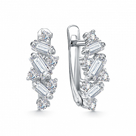 Серьги с фианитом родированные серебро 925*