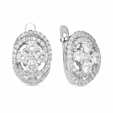Серьги с фианитом родированные серебро 925*