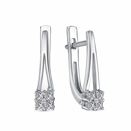 Серьги с фианитом родированные серебро 925*