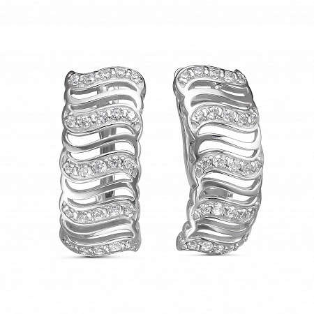 Серьги с фианитом родированные серебро 925*