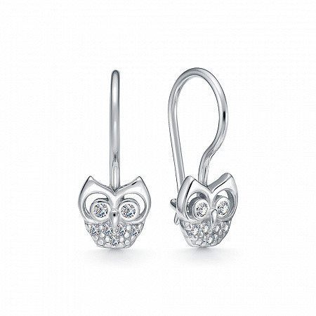 Серьги с фианитом родированные серебро 925*