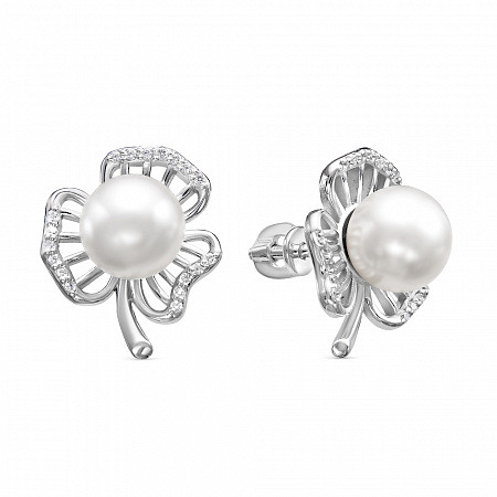 Серьги с иск.жемчугом родированные серебро 925*