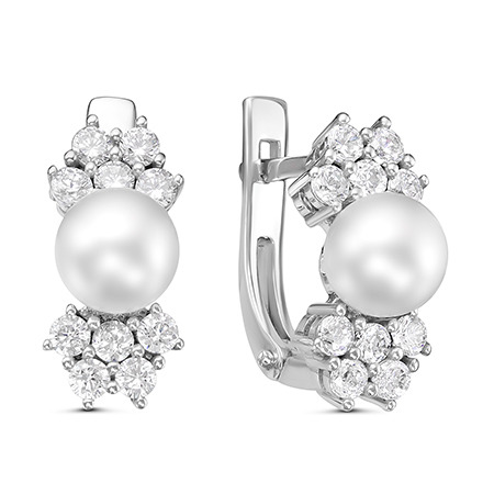 Серьги с иск.жемчугом родированные серебро 925*