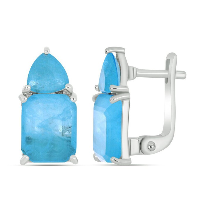 Серьги, арт.658115 Серебро Серебро 925, 4,39 гр., турмалин лазурный выращ.