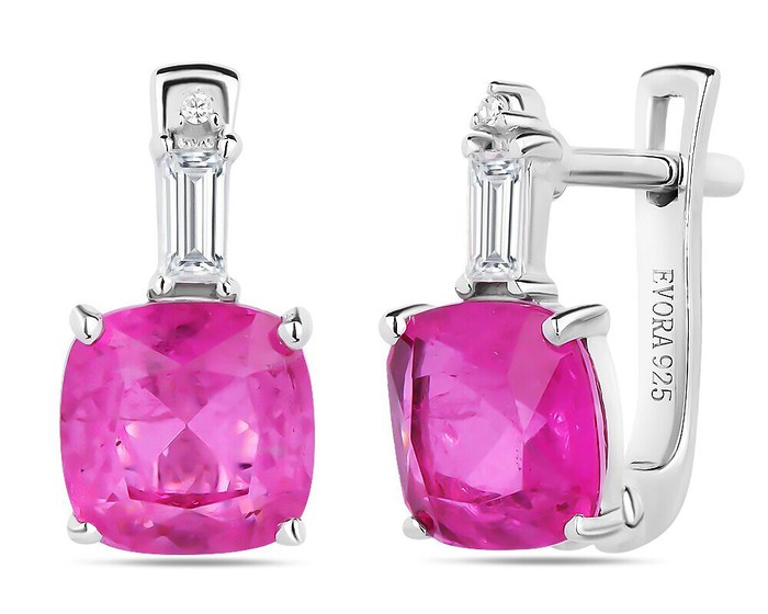Серьги, арт.658707 Серебро Серебро 925, 3,3 гр., турмалин малиновый выращ.