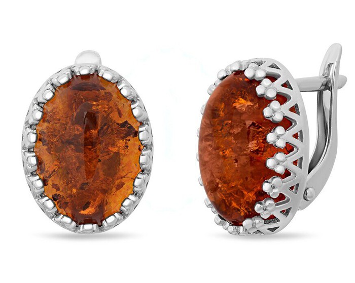 Серьги, арт.656283 Серебро Серебро 925, 4,1 гр., янтарь