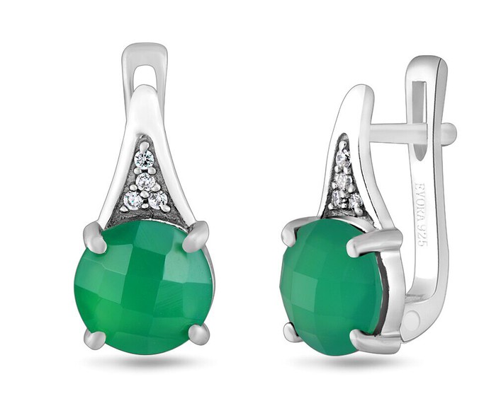Серьги, арт.656196 Серебро Серебро 925, 2,71 гр., зеленый агат