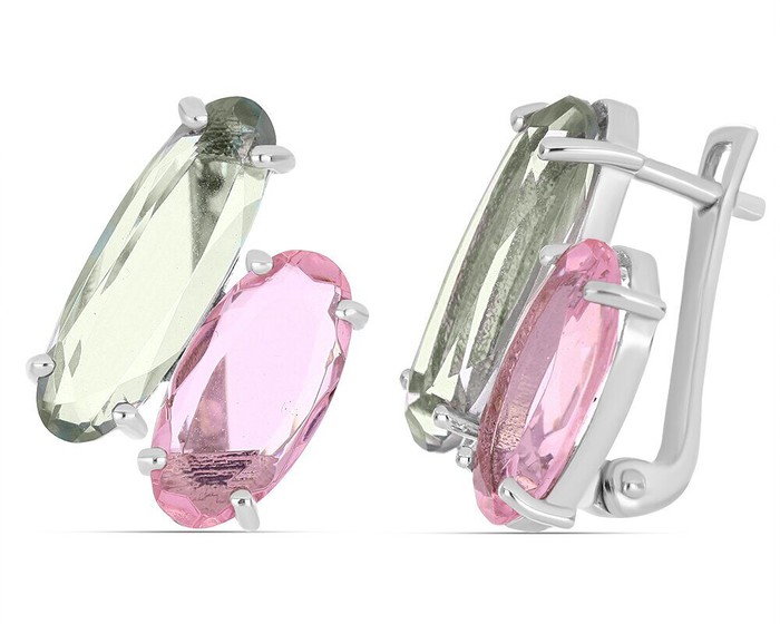 Серьги, арт.658097 Серебро Серебро 925, 6,74 гр., зеленый аметист , морганит