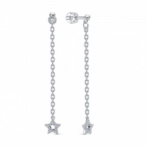 Серьги из золочёного серебра с родированием и фианитами - Клевер, четырёхлистник
