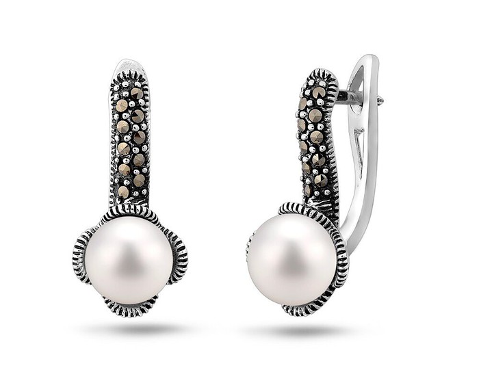 Серьги, арт.656470 Серебро Серебро 925, 6,96 гр., жемчуг , марказит