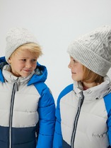 Очень теплая зимняя шапочка для мальчиков с отворотом. Верхний слой связан из мягкой акриловой пряжи, нижний слой (подклад) шапки и снуда выкроен из хлопкового полотна и полностью пришит. Внутри утеплитель изософт. На макушке небольшой помпон. Сбоку - фирменный лейбл.