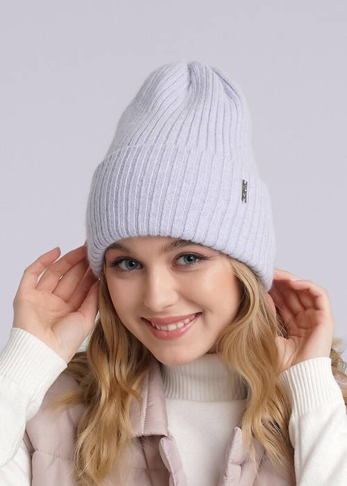 Женская двойная шапка с отворотом, декорирована стильной имиджевой нашивкой. Идеальна для зимы.