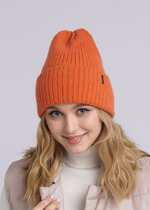 Женская двойная шапка с отворотом , декорирована нашивкой логотип в височной зоне. Подойдёт для холодной зимы.