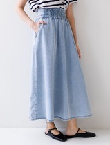 Юбка миди А-силуэта с поясом на резинке из облегченного денима